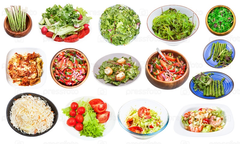 Коллаж из различных овощных салатов изолированы