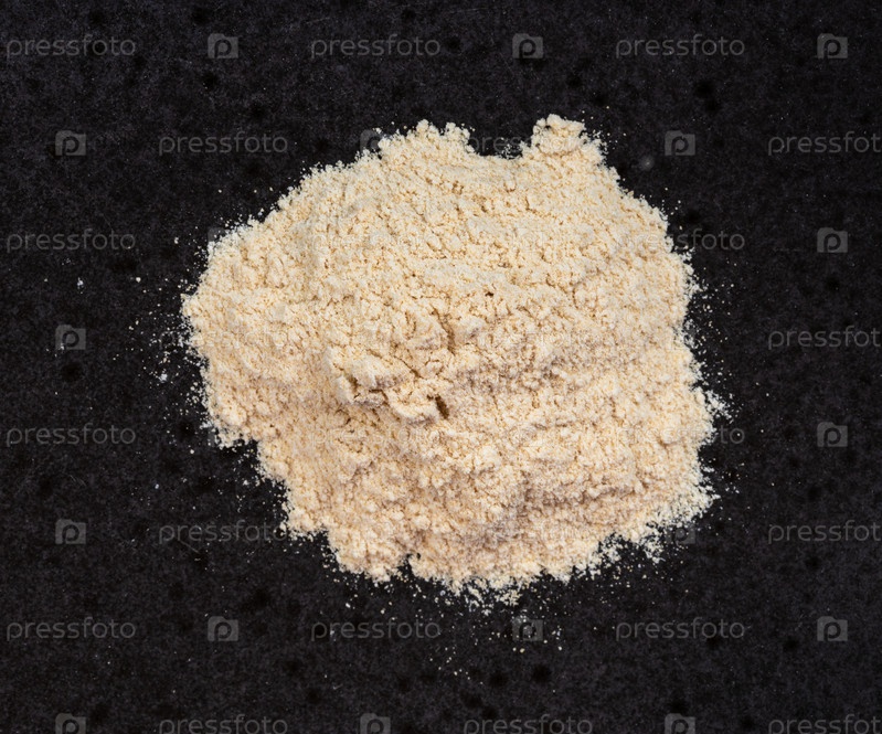 Куча порошка яблочного пектина крупным планом на черном