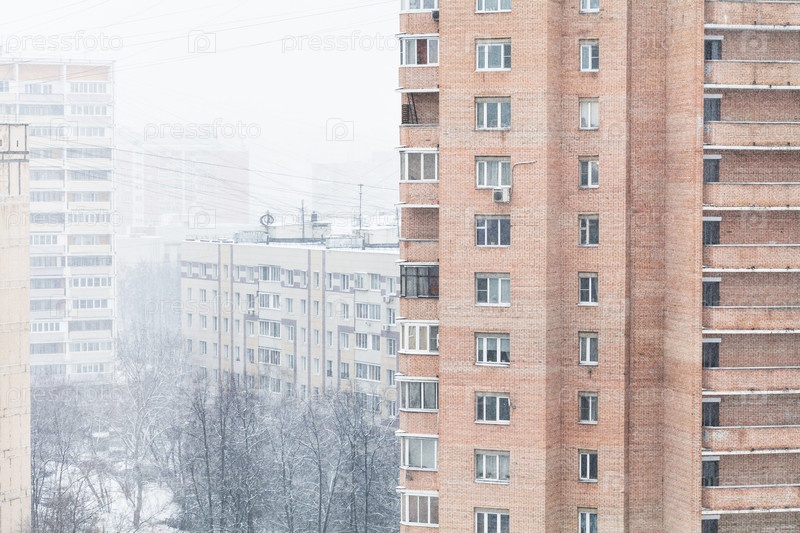Снегопад в жилом районе города