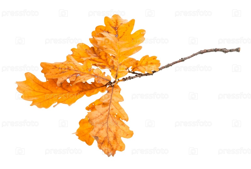 Ветка с оранжевыми дубовыми листьями осенью изолирована
