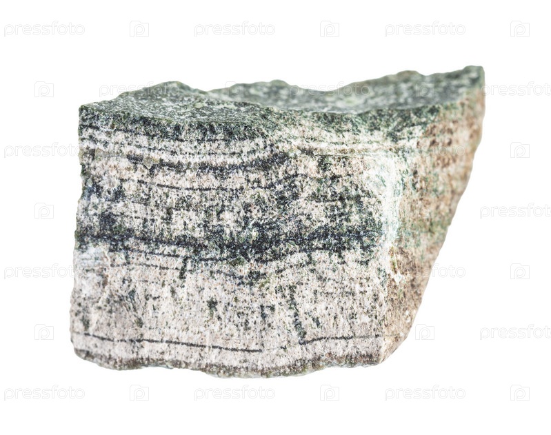 Крупный план образца природного минерала из геологической коллекции - кусок сырой породы Скарн, выделенный на белом фоне