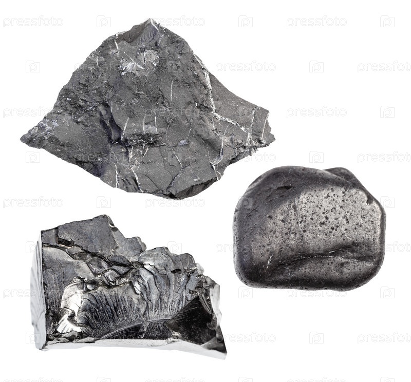 Набор различных шунгитовых пород, изолированных на белом