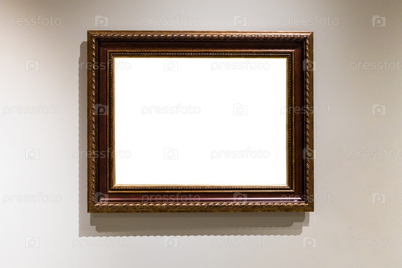 Широкая темно-коричневая деревянная рамка на серой стене