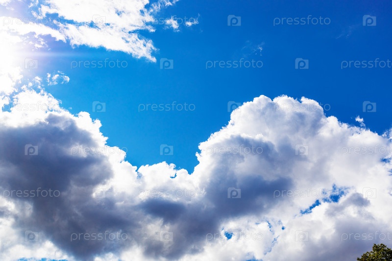Большое облако в голубом небе над деревом летом