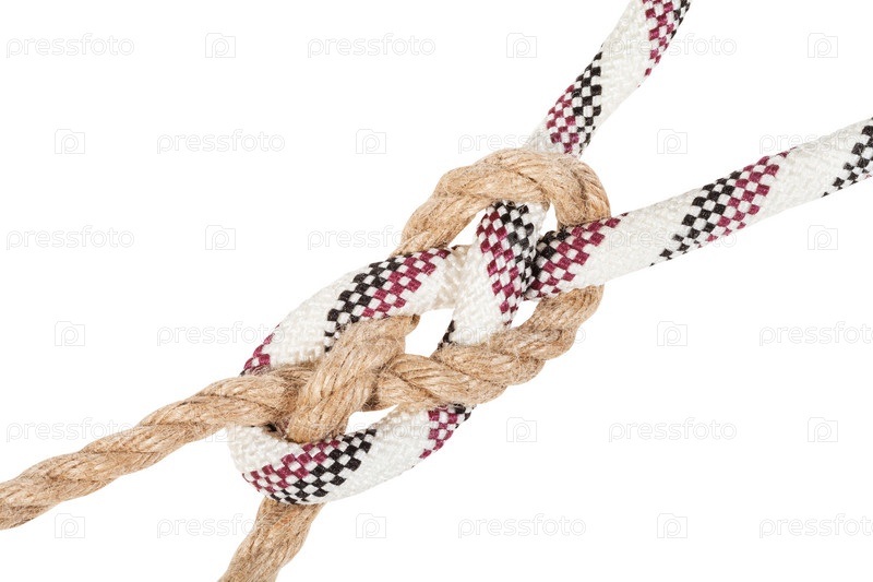 Матросский нагрудный узел, соединяющий веревки крупным планом