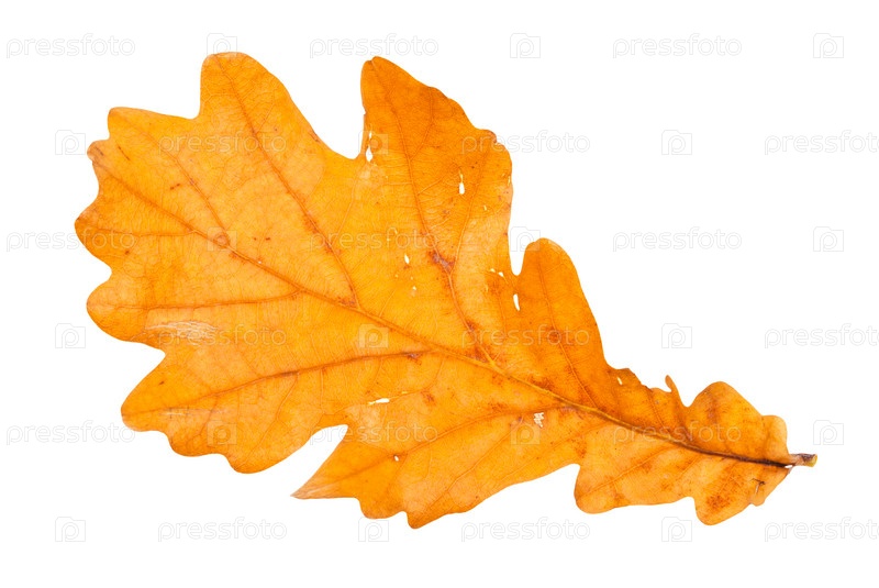 Упавший коричневый дубовый лист, изолированный на белом