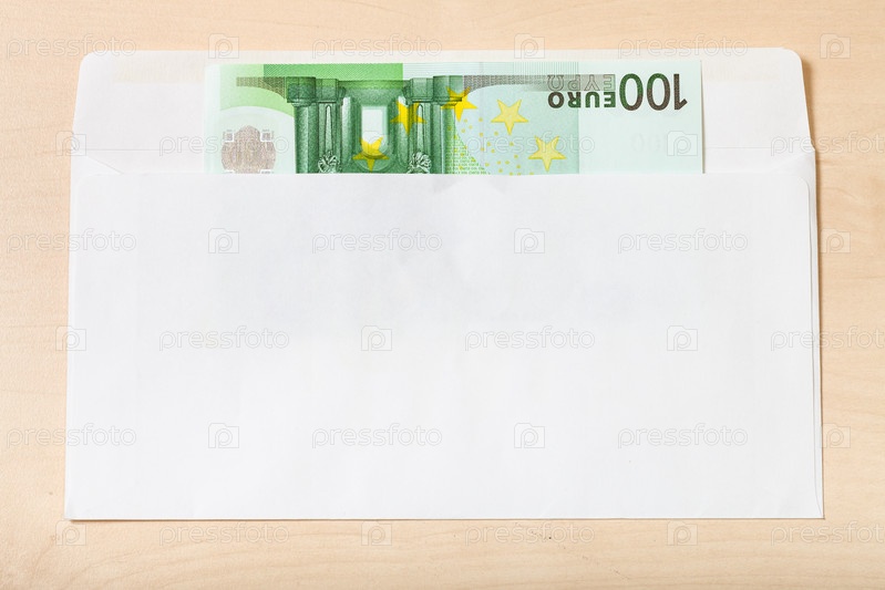 Одна банкнота сто евро в конверте на столе