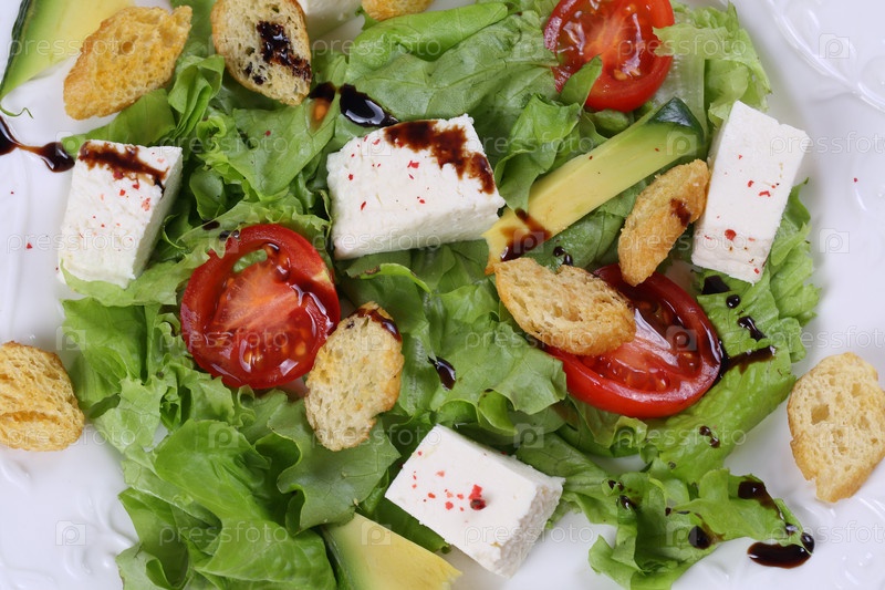 Салат с сыром,авокадо,помидорами и сухариками