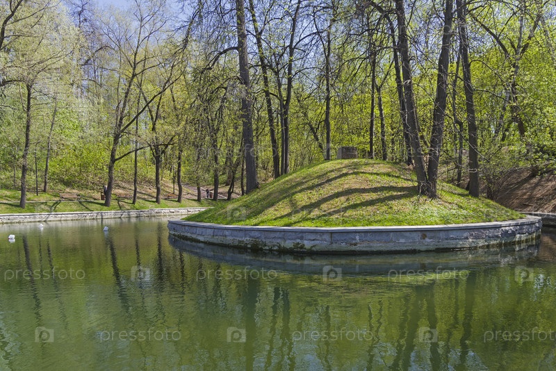 Маленький остров на Екатерининском пруду в Нескучном Саду. Москва, Россия, начало мая