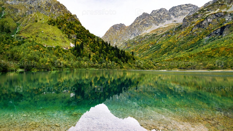 Голубая вода озера Кардывач с зеркальным отражением