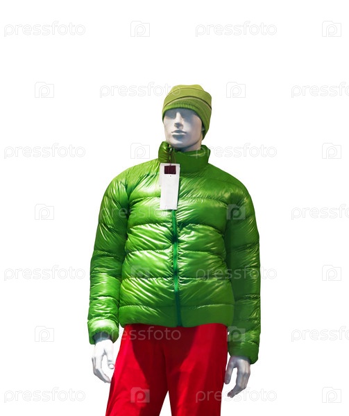 Вид спереди на мужской манекен с головой в зимней спортивной одежде