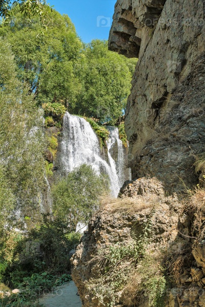 Горное ущелье и вид на красивый водопад