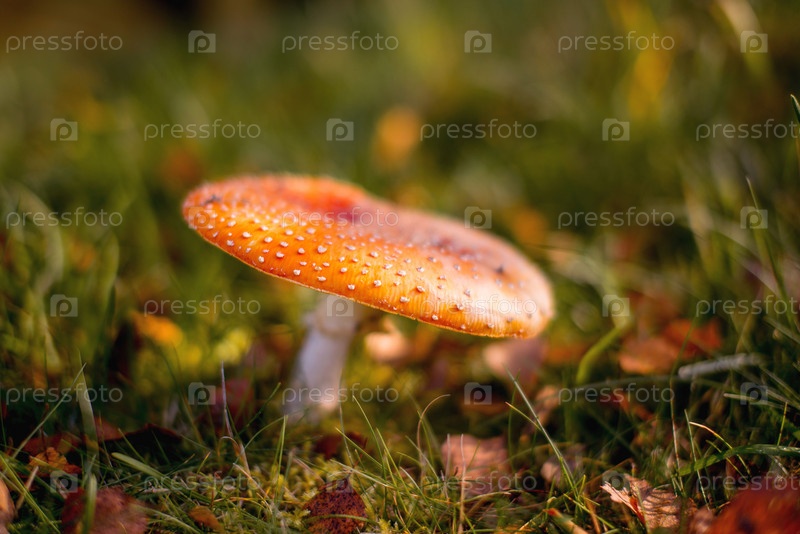 Гриб мухомор в солнечную погоду