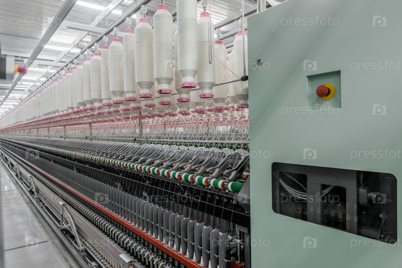 Катушки с нитками на текстильной фабрике