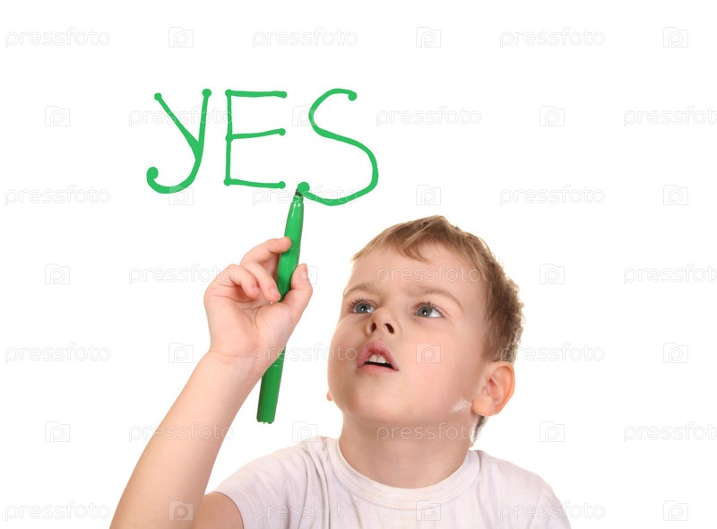 Мальчик пишет слово "Да" фломастером