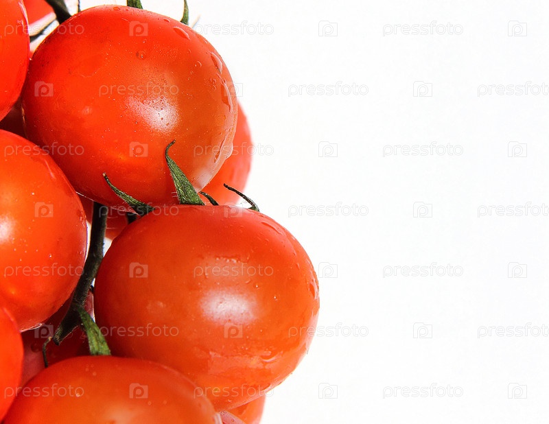 Томаты черри красные крупным планом с левой части белого фона