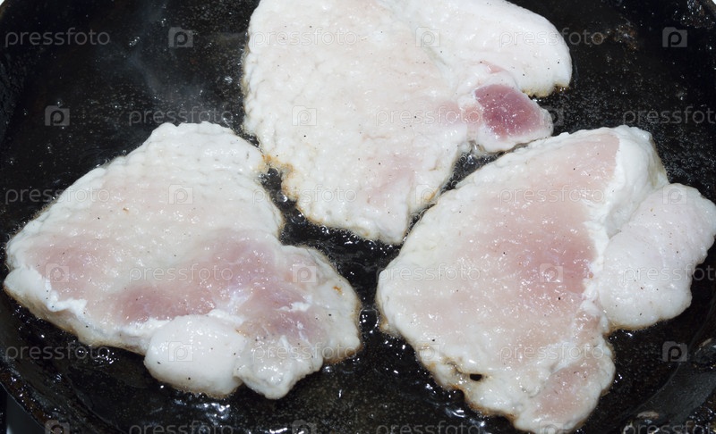 Процесс приготовления. Жареное мясо. Свиная отбивная