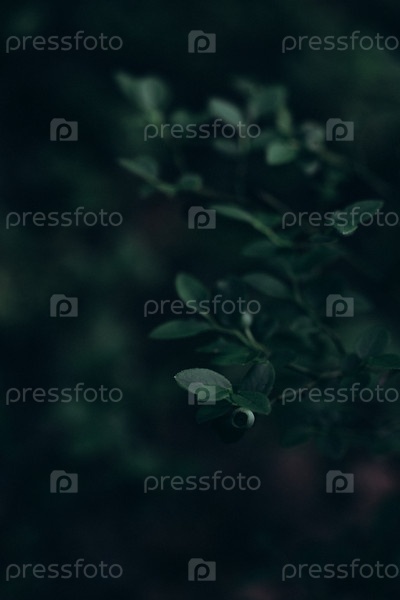 Молодая черника на кусте в лесу/ молодая черника на ветке в лесу