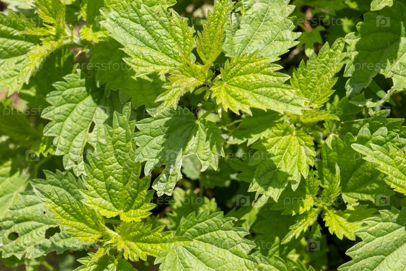 Кусты крапивы ранней весной, зелень обыкновенной крапивы