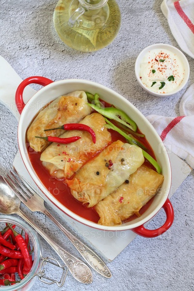 Голубцы с фаршем на сером фоне