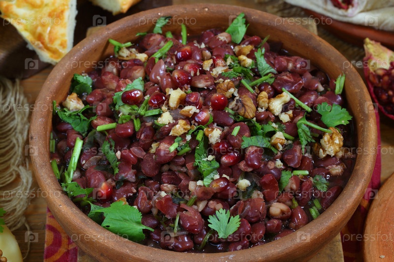 Лобио с кукурузной кашей, сыром, хачапури и ткемали