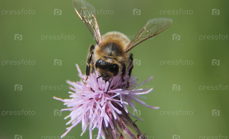 Пчела собирает мед макросъемка