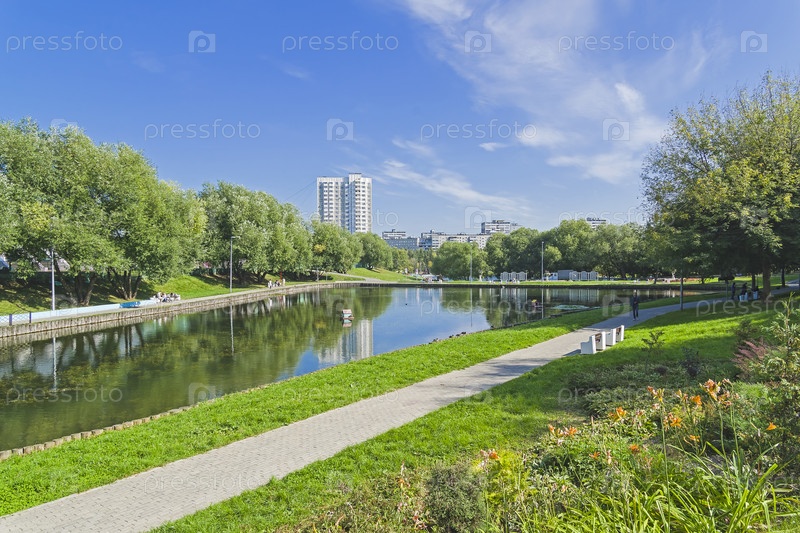 Малый Коньковский пруд. Юго-Западный округ Москвы (улица Введенского). Солнечный день в конце августа