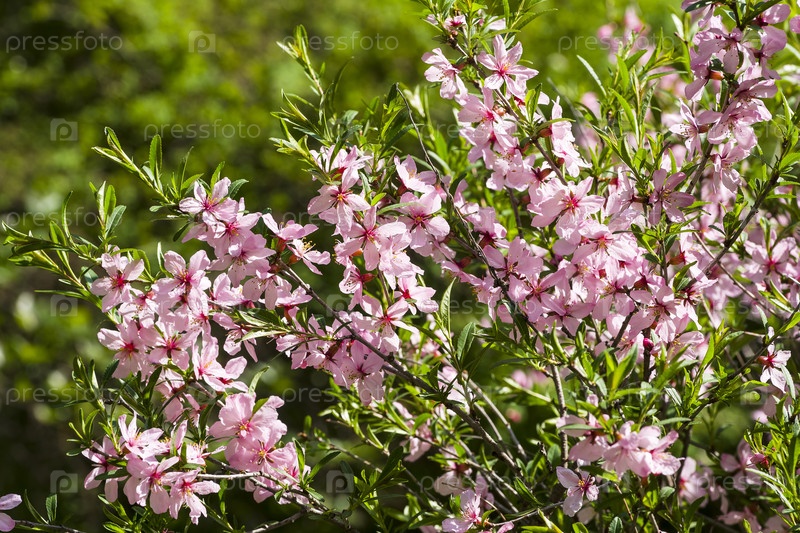Цветящий карликовый миндаль (Amygdalus nana, другие названия - бобовник, низкий миндаль) в Аптекарском саду (филиал Ботанического сада МГУ).Москва