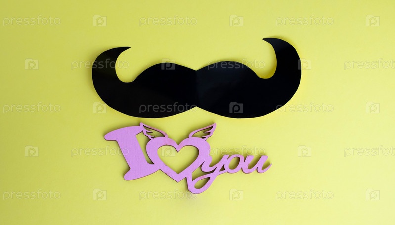Концепция Дня отца. Черные усы и я тебя люблю подписать на фоне желтой бумаги