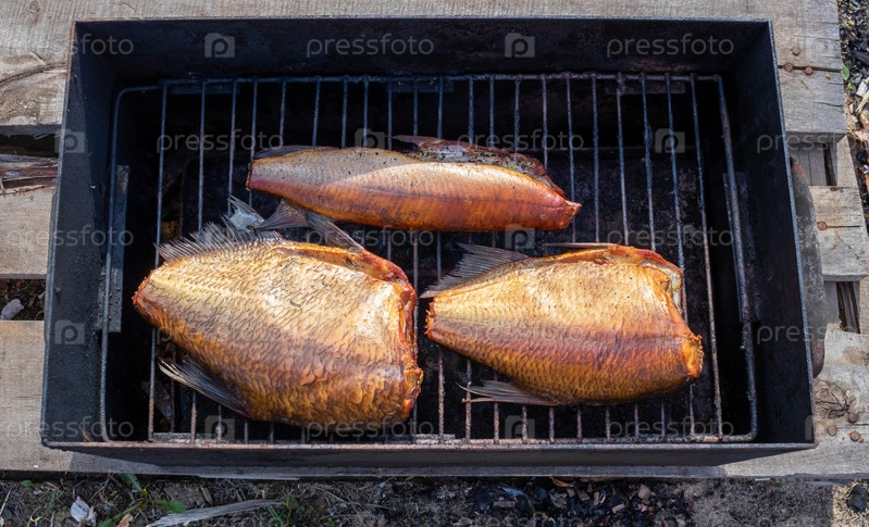 Три копченые рыбы в импровизированной коптильне