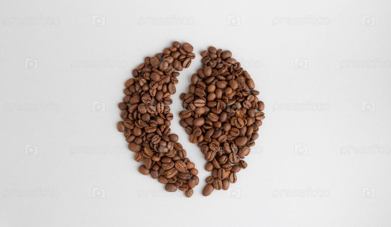 Кофейные зерна. Изолированный на сером фоне в форме кофейного зерна