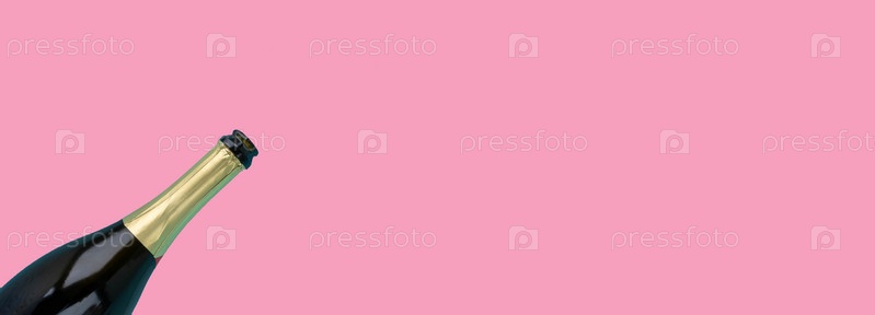Открытая бутылка шампанского и сердца на синем фоне. Концепция праздника, Новый год, День святого Валентина, 8 марта