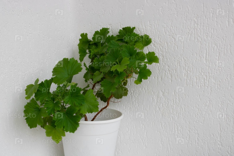 Королевская зеленая герань, садовая пеларгония в цветочном горшке на белом фоне