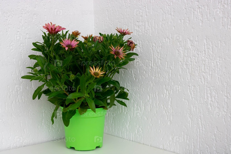 Газания цветок в зеленом горшке на белом фоне. Место для текста