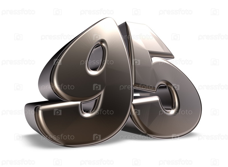 Металлическая цифра девяносто пять на белом фоне. 3d