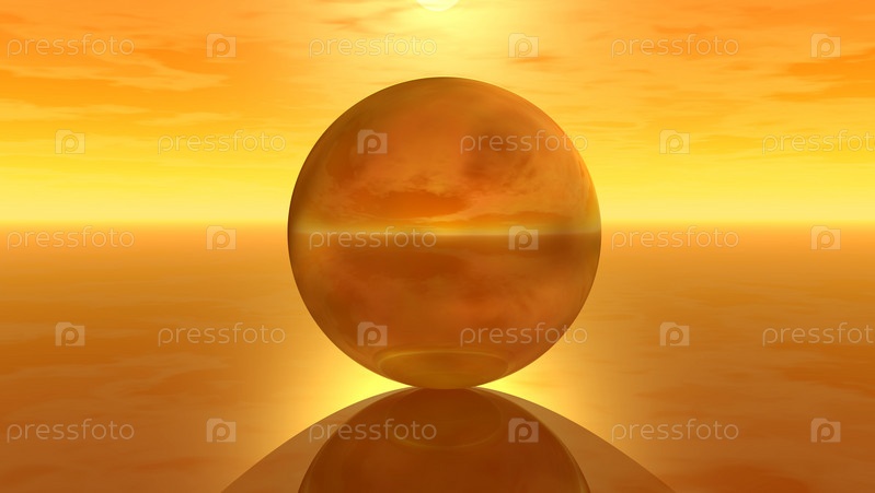 Металлическая сфера на закате. 3D иллюстрация