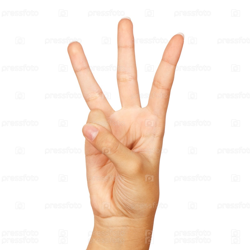 Американский язык жестов. женская рука показывает букву w. изолированные на белом фоне