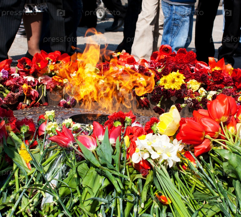 Цветы возле мемориала день победы в россии