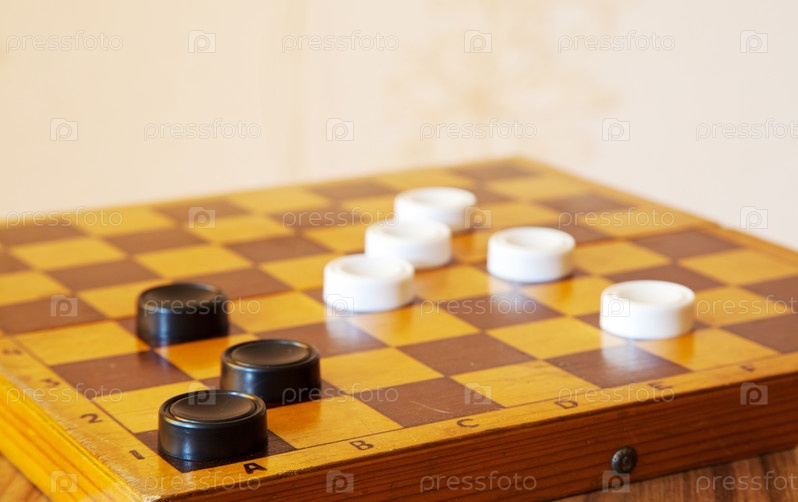 Черно-белые шашки на шахматной доске