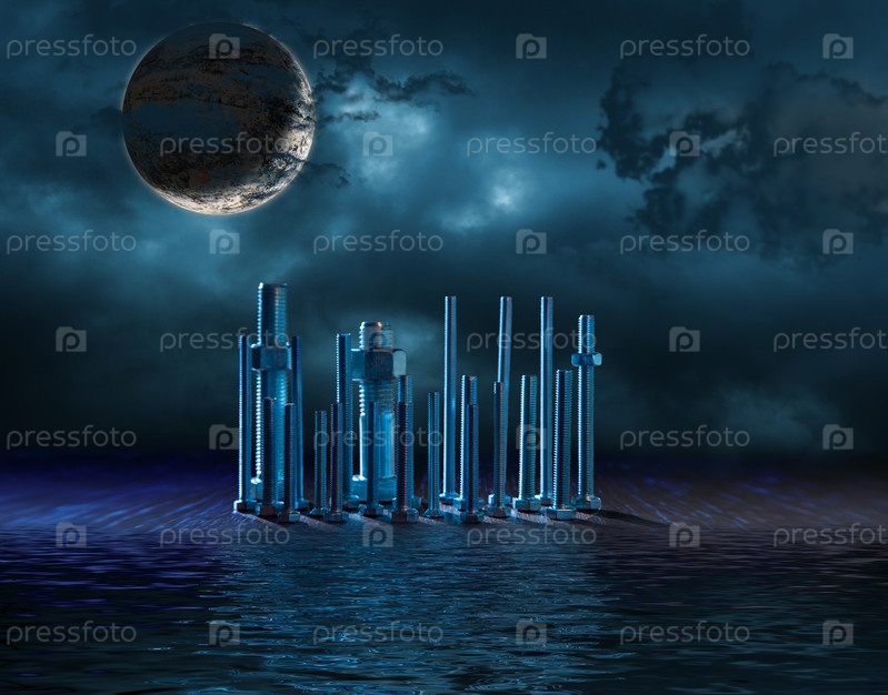 Ночной город с яркой луной