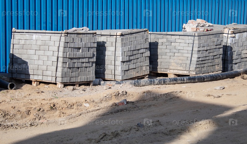 Тротуарная плитка упакованная в штабель на открытом воздухе