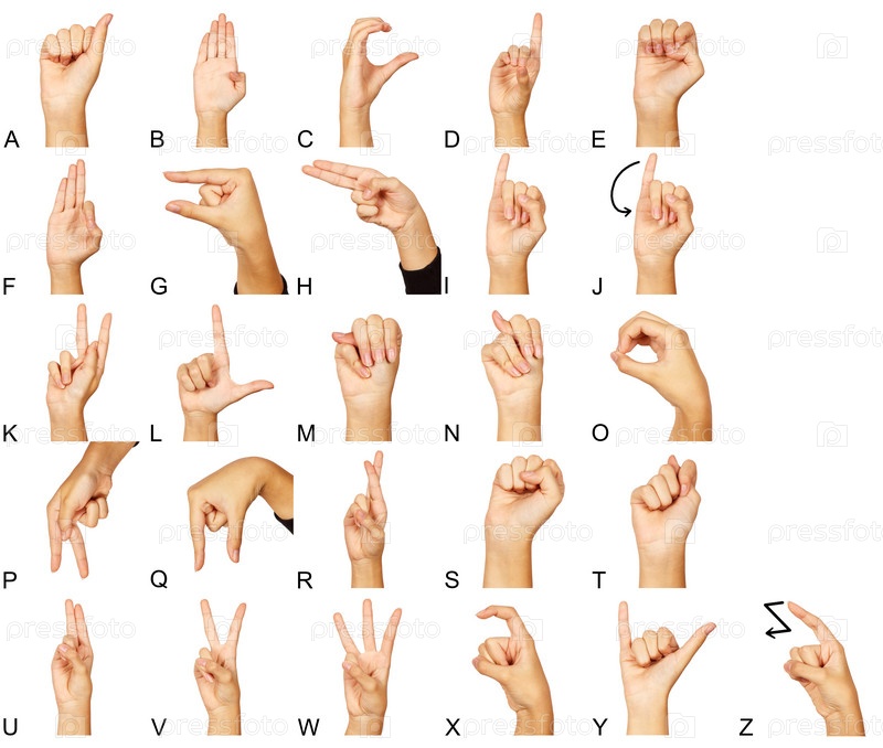 Американский язык жестов. женская рука жестикулирует на белом фоне