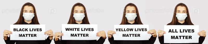 Девушка-подросток держит плакат, все жизни имеют значение в помещении на светлом фоне