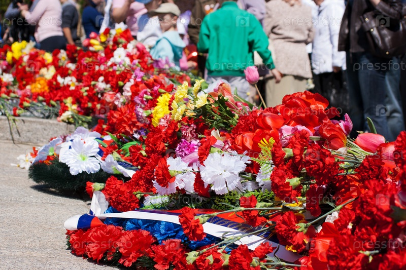 Цветы возле памятника в день победы