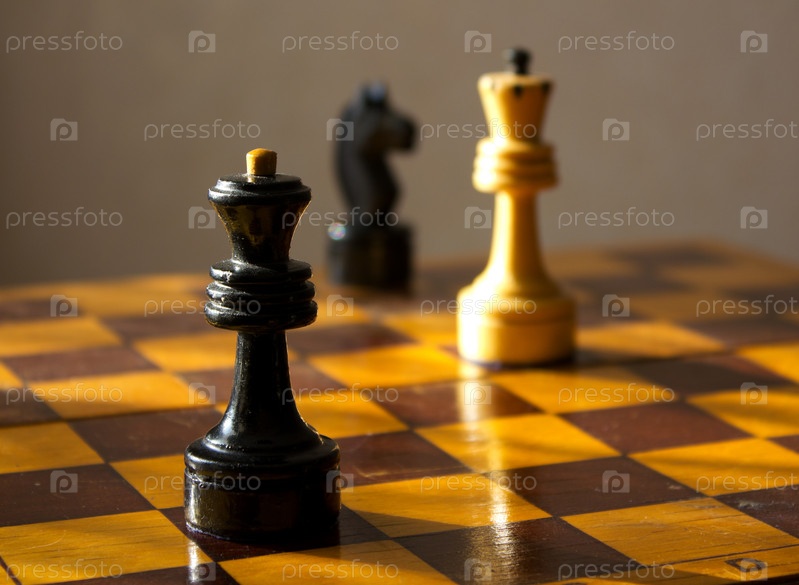Ситуация на шахматной доске с черным ферзем и белым королем