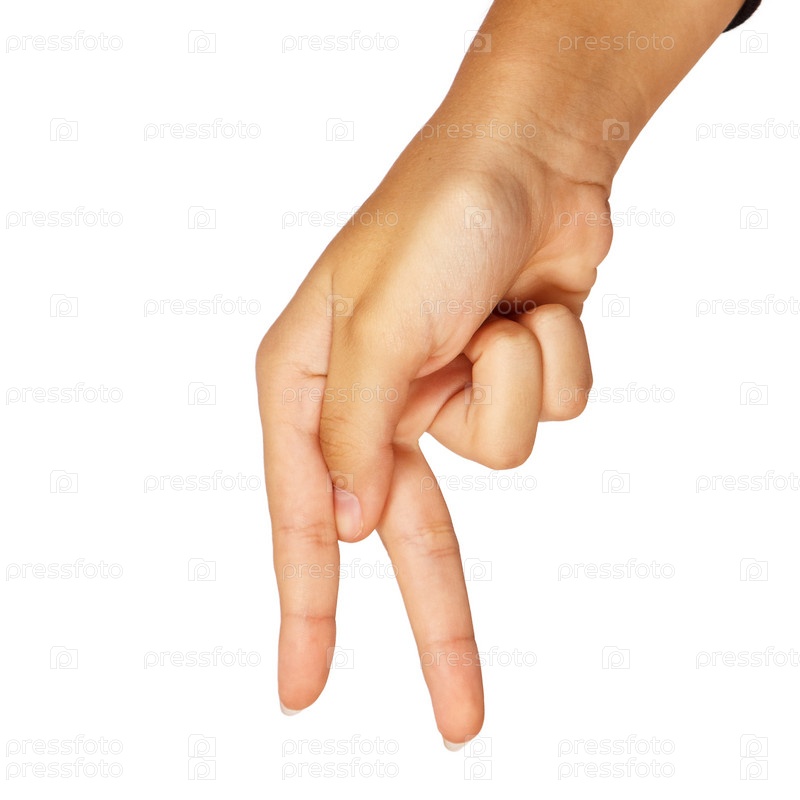 Американский язык жестов. женская рука показывает букву p. изолированы на белом фоне