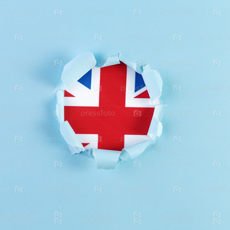Рваная бумага с английским флагом из синей бумаги. Образование и бизнес