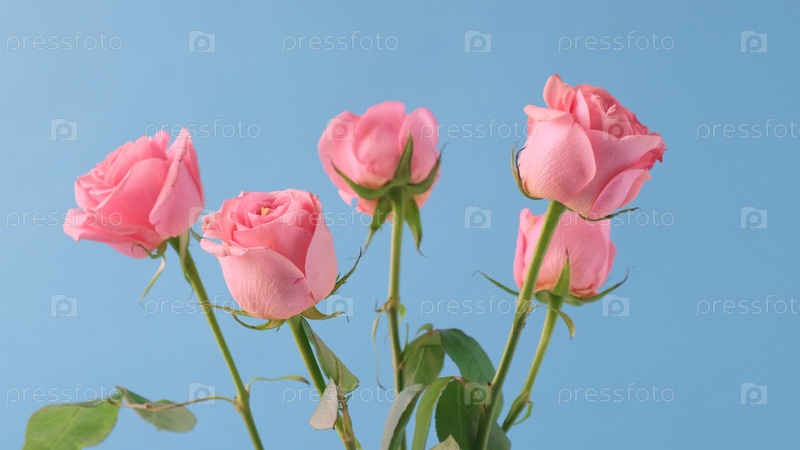 Букет розовых роз на синем фоне. День рождения, матери, валентинки, женщины, концепция дня свадьбы