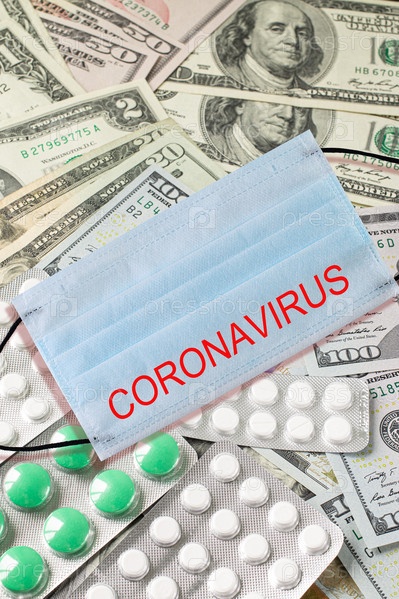 Медицинская маска и деньги. Хирургическая маска для лица. Концепция карантина коронавируса