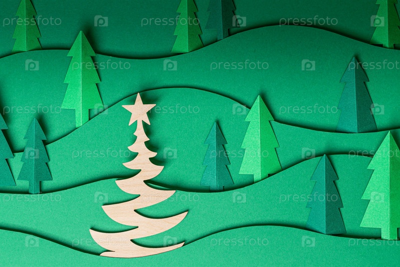 3D всплывающие рождественские елки из бумаги на зеленом фоне